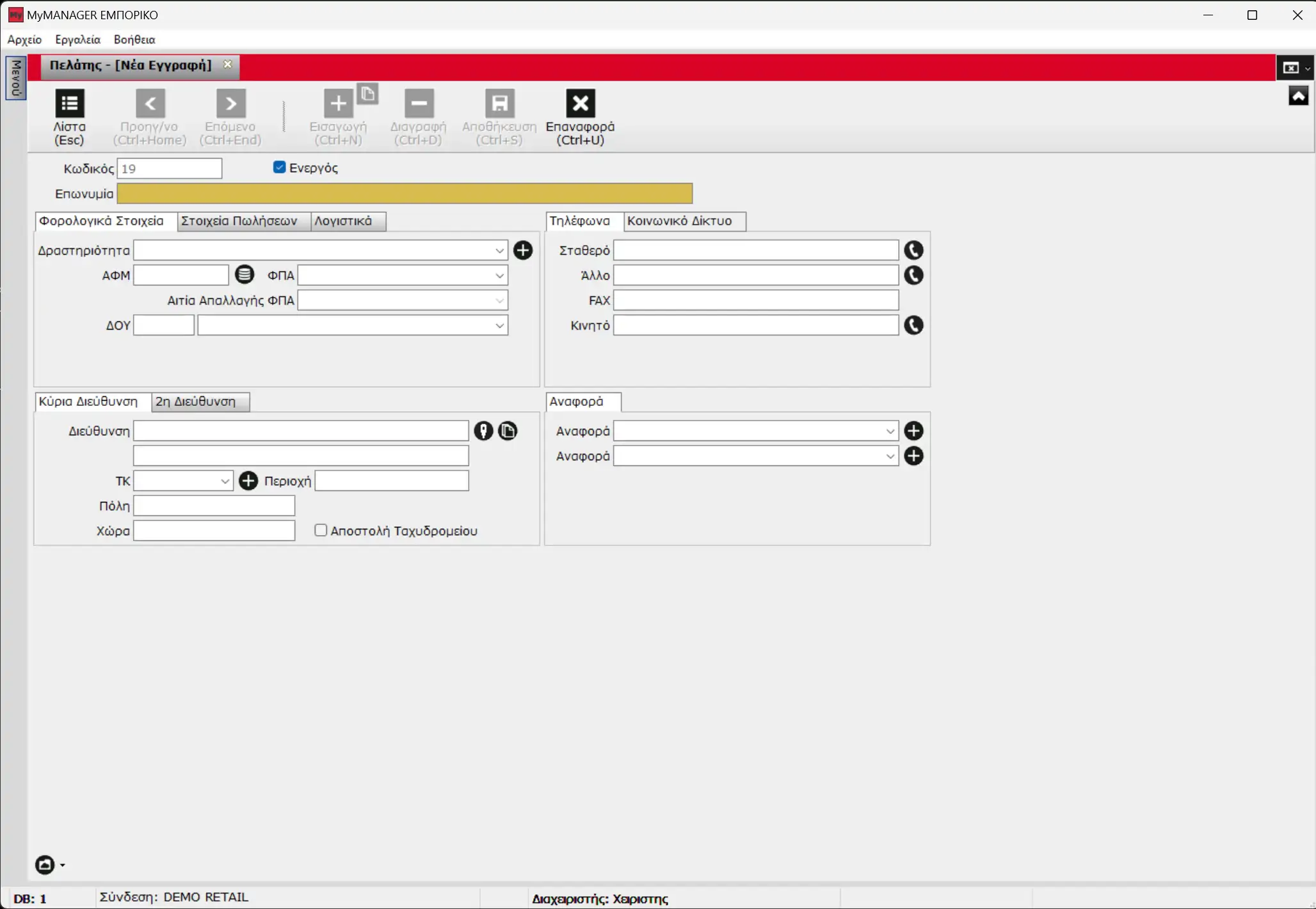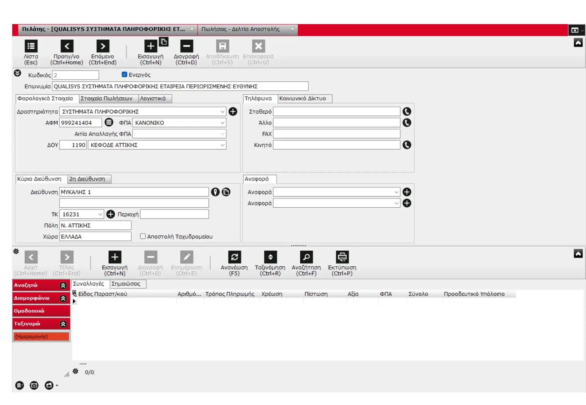 - Πλήρες αρχείο πελατών και προμηθευτών με όλα τα απαραίτητα στοιχεία, στοιχεία επικοινωνίας και ιστορικό συναλλαγών